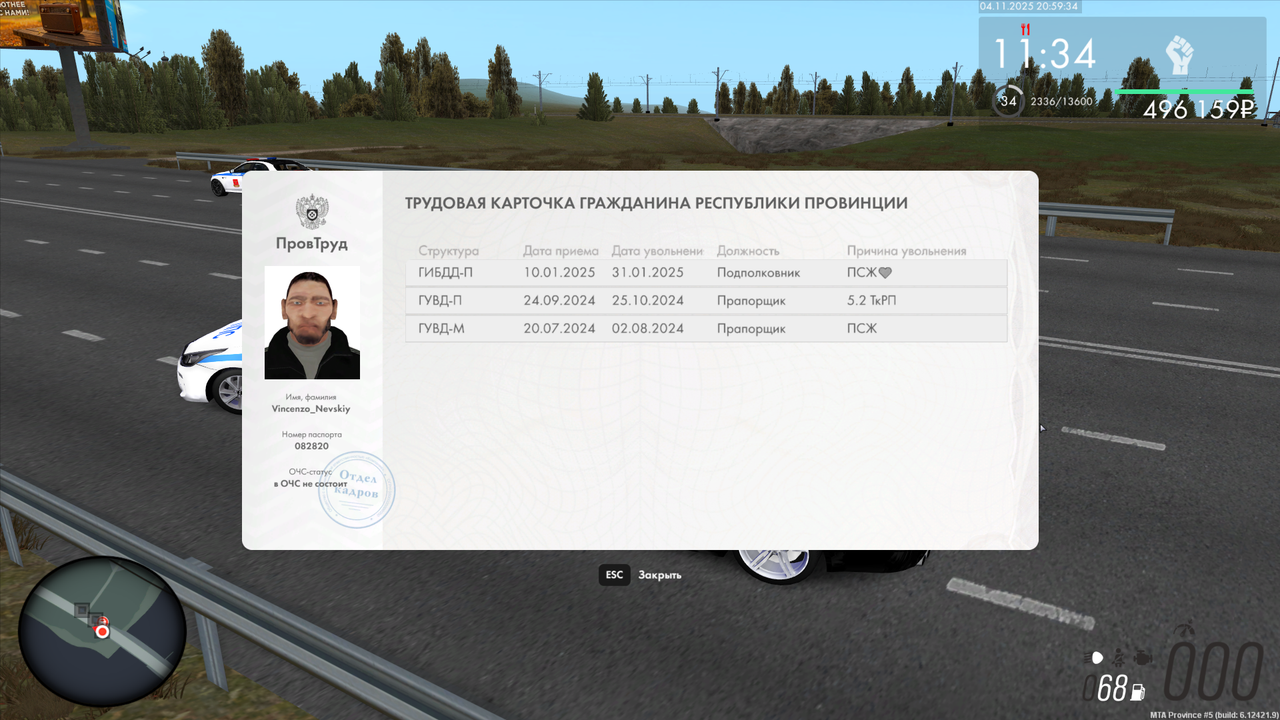 Rostam_Nevskiy 0 · ID: #49 Опубликовано 6 ноября Генеральному директору Рыбпромкомбаната Невский Томас Альфонсович от гражданина(-ки) Бишопа Дмитрия Сергеевича Заявление Я, Невский Маттео Ростамович, прошу Вас принять меня в Рыбпромкомбанат с 07.08.2025 С должностной инструкцией, правилами внутреннего трудового распорядка и условиями трудового договора ознакомлен(-а). Прикладываю документы для трудоустройства: Персональные данные: (ссылка на скриншот статистики (кнопка М) с включенным временем над HUD + /pass); file:///D:/Province%20Games/screenshots/mta-screen_2025-11-07_01-58-15.png Трудовая книжка: (ссылка на скриншот /tk с timestamp); https://yapx.ru/album/cEQfd Мой опыт работы: Работал в следующих организациях: (название официальной семьи/ОПГ, когда и сколько там были) - (причина увольнения). ОПГ.М пробыл там +- 6 месяцев. Увал по причине заморозки семьи OOC: Мой текущий и прошлые никнеймы: (перечислить никнеймы); Matteo_Nevskiy Мой возраст: (полных лет). 25 Cредство связи: (Ваш ВК для связи). https://vk.com/41pandapk В 06.11.2025 в 17:05, Rostam_Nevskiy сказал: Генеральному директору Рыбпромкомбаната Невский Томас Альфонсович от гражданина(-ки) Невский Маттео Ростамович Заявление Я, Невский Маттео Ростамович, прошу Вас принять меня в Рыбпромкомбанат с 07.08.2025 С должностной инструкцией, правилами внутреннего трудового распорядка и условиями трудового договора ознакомлен(-а). Прикладываю документы для трудоустройства: Персональные данные: (ссылка на скриншот статистики (кнопка М) с включенным временем над HUD + /pass); file:///D:/Province%20Games/screenshots/mta-screen_2025-11-07_01-58-15.png Трудовая книжка: (ссылка на скриншот /tk с timestamp); https://yapx.ru/album/cEQfd Мой опыт работы: Работал в следующих организациях: (название официальной семьи/ОПГ, когда и сколько там были) - (причина увольнения). ОПГ.М пробыл там +- 6 месяцев. Увал по причине заморозки семьи OOC: Мой текущий и прошлые никнеймы: (перечислить никнеймы); Matteo_Nevskiy Мой возраст: (полных лет). 25 Cредство связи: (Ваш ВК для связи). https://vk.com/41pandapk Поделиться сообщением Ссылка на сообщение