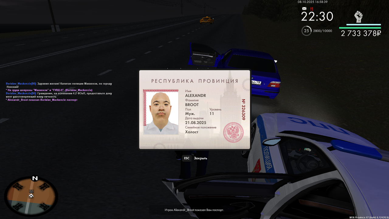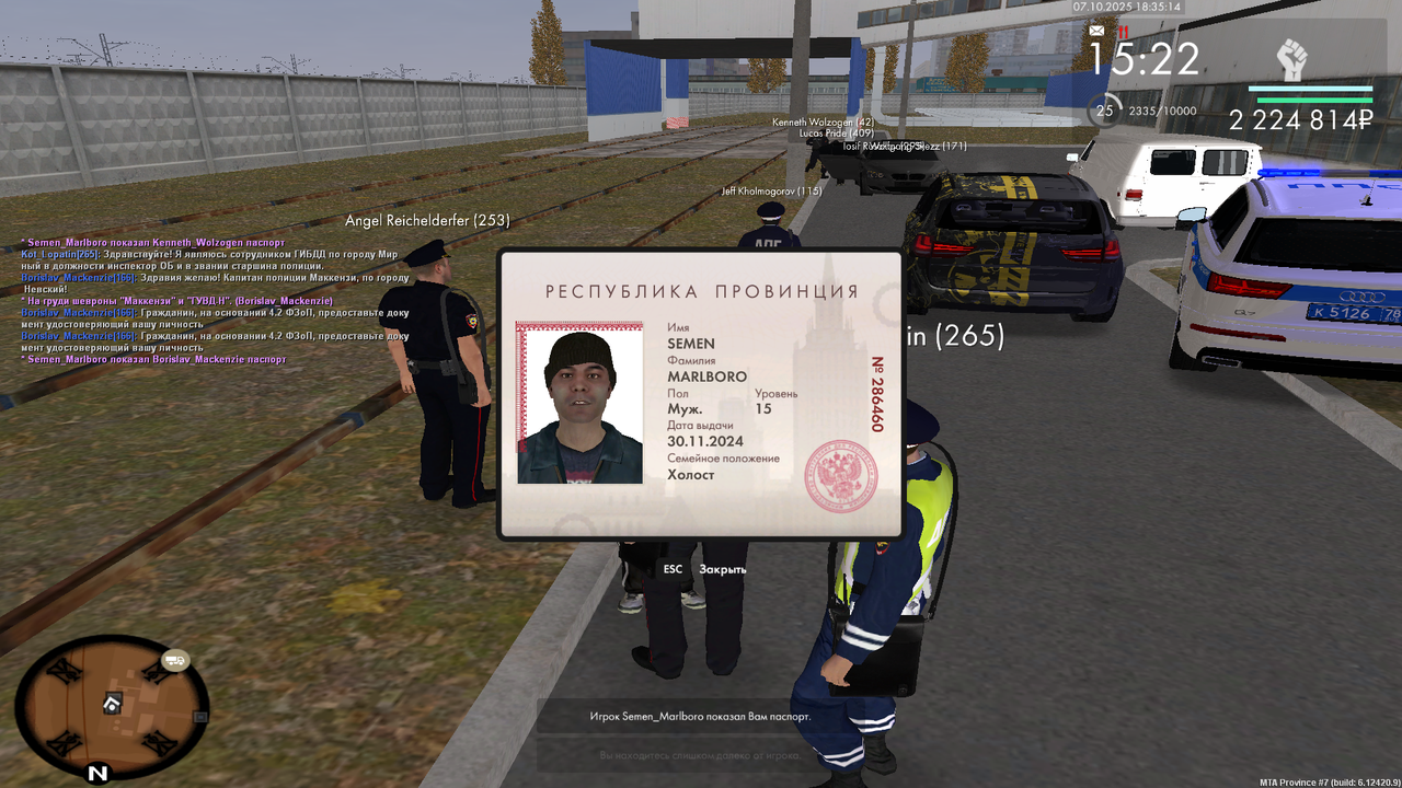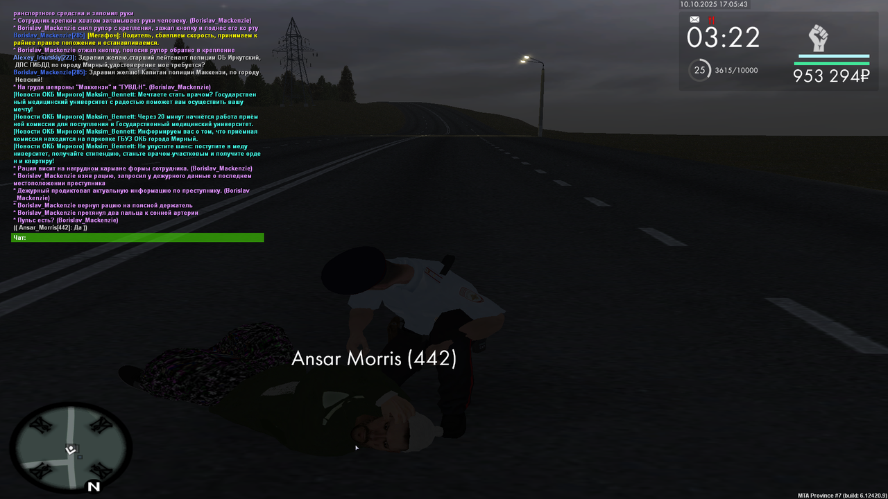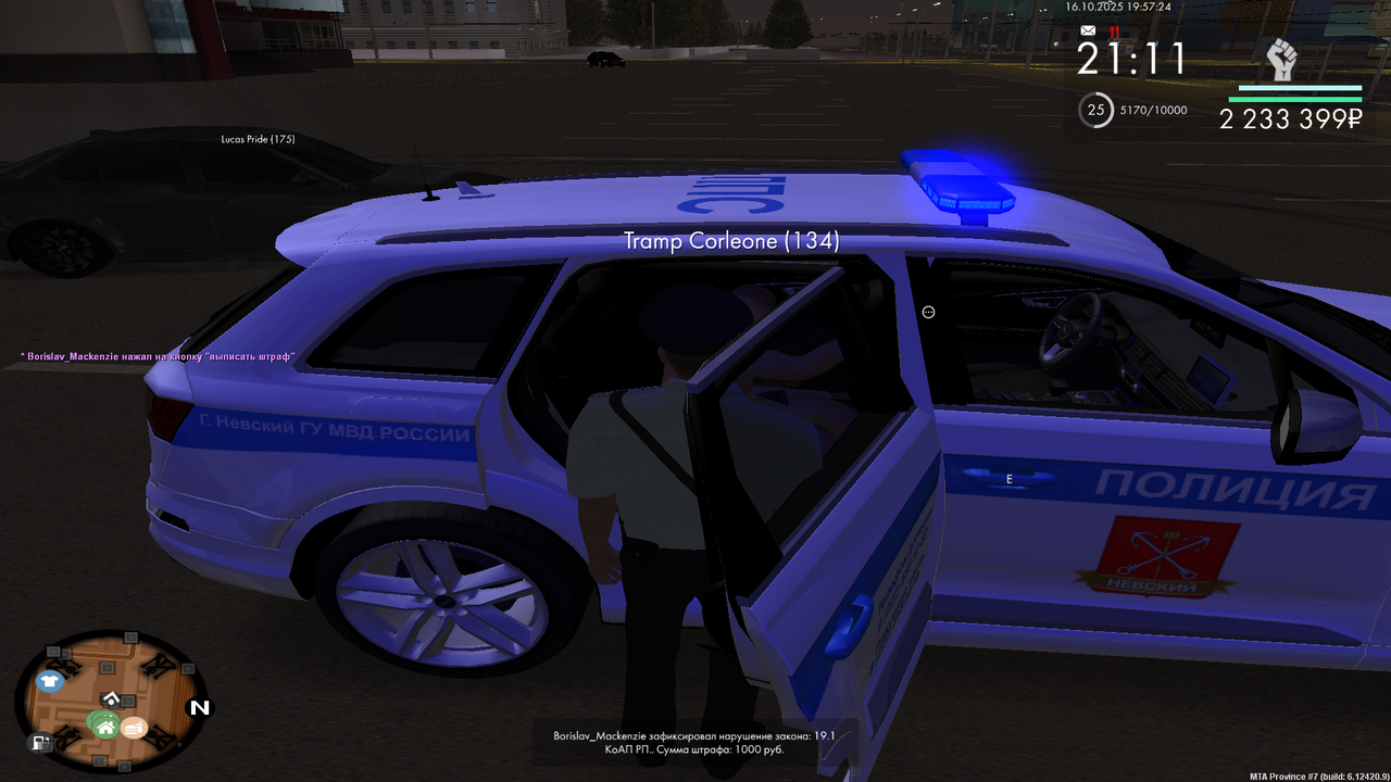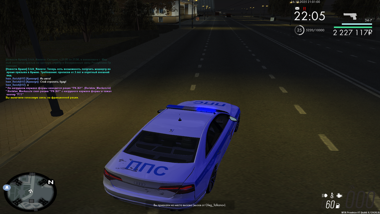 Vladimir_Prochevskiy 1 · ID: #28 Опубликовано Вторник в 11:04 Начальнику Управления внутренних дел по городу Мирный и области генерал-майору полиции Лопатину Вавилону Вавилоновичу от Инспектора ППС,Лейтенанта полиции Прочевского Владимира Юрьевича РАПОРТ о проделанной работы инспектора патрульно-постовой службы Я, Прочевский Владимир Юрьевич, занимая должность Инспектор ППС в звании Лейтенант полиции, прошу Вас рассмотреть мой рапорт о проделанной работе с 15.10.2025 по 21.10.2025 и начислить мне 333 баллов по факту проверенного рапорта. Прикрепляю свой отчёт: 15.10.2025 - Задержания (87 баллов) - https://disk.yandex.ru/d/MtBHswob_4yIsg 15.10.2025 - Документы (28 баллов) - https://disk.yandex.ru/d/TZyNwZvtF3cp2A 16.10.2025 - Лекции(40 баллов) - https://disk.yandex.ru/d/OA5TkJ3XndhbBA 16.10.2025 - МП(40 баллов)- https://disk.yandex.ru/d/Qgr1U4M4ngH8Bg 16.10.2025 - Тренировки(32 балла) - https://disk.yandex.ru/d/j5kHunUCmAX9EA 20.10.2025 - Патруль без напарника(20 баллов) - https://disk.yandex.ru/d/f5etfEMPc6142w 20.10.2025 - Пост без напарника(32 балла) - https://disk.yandex.ru/d/D8qlM32Kb4gf3g 21.10.2025 - Патруль с напарником (24 балла) -https://disk.yandex.ru/d/YYv3KoK83nyhrg Отчет более 8 пунктов - выше Дата: 21.10.2025 Подпись: Володя Поделиться сообщением Ссылка на сообщение Поделиться на другие сайты Поделиться