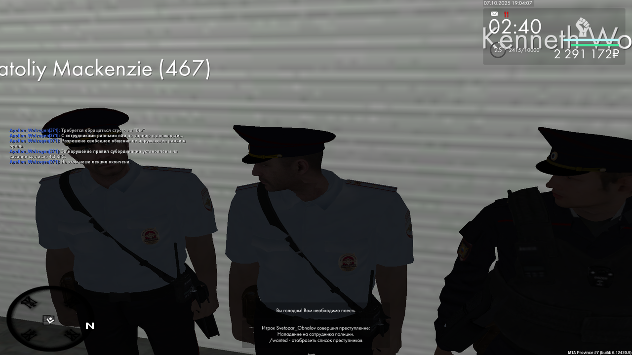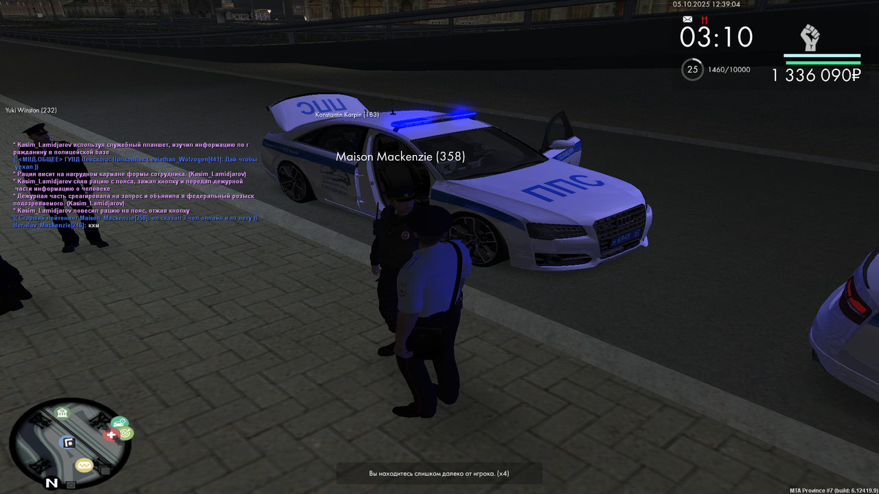 ilyushhhha 17 · ID: #30 Опубликовано Среда в 20:49 В 21.10.2025 в 14:04, Vladimir_Prochevskiy сказал: Начальнику Управления внутренних дел по городу Мирный и области генерал-майору полиции Лопатину Вавилону Вавилоновичу от Инспектора ППС,Лейтенанта полиции Прочевского Владимира Юрьевича РАПОРТ о проделанной работы инспектора патрульно-постовой службы Я, Прочевский Владимир Юрьевич, занимая должность Инспектор ППС в звании Лейтенант полиции, прошу Вас рассмотреть мой рапорт о проделанной работе с 15.10.2025 по 21.10.2025 и начислить мне 333 баллов по факту проверенного рапорта. Прикрепляю свой отчёт: 15.10.2025 - Задержания (87 баллов) - https://disk.yandex.ru/d/MtBHswob_4yIsg 15.10.2025 - Документы (28 баллов) - https://disk.yandex.ru/d/TZyNwZvtF3cp2A 16.10.2025 - Лекции(40 баллов) - https://disk.yandex.ru/d/OA5TkJ3XndhbBA 16.10.2025 - МП(40 баллов)- https://disk.yandex.ru/d/Qgr1U4M4ngH8Bg 16.10.2025 - Тренировки(32 балла) - https://disk.yandex.ru/d/j5kHunUCmAX9EA 20.10.2025 - Патруль без напарника(20 баллов) - https://disk.yandex.ru/d/f5etfEMPc6142w 20.10.2025 - Пост без напарника(32 балла) - https://disk.yandex.ru/d/D8qlM32Kb4gf3g 21.10.2025 - Патруль с напарником (24 балла) -https://disk.yandex.ru/d/YYv3KoK83nyhrg Отчет более 8 пунктов - выше Дата: 21.10.2025 Подпись: Володя [Зам.Нач.УВД] Отказано. Не соблюдены минимальные критерии. В 21.10.2025 в 20:49, Markiz_Vilson сказал: Начальнику Управления внутренних дел по городу Мирный и области генерал-майору полиции Лопатину Вавилону Вавилоновичу от Инспектора ППС,Лейтенанта полиции Маккензи Александера Анатоливича о проделанной работы инспектора патрульно-постовой службы Я, Маккензи Александер Анатоливич , занимая должность Инспектора ППС в звании Лейтенанта полиции, прошу Вас рассмотреть мой рапорт о проделанной работе с 12/10/2025 по 21/10/2025 и начислить мне 371 баллов по факту проверенного рапорта. Прикрепляю свой отчёт: c 12.10.2025 по 18.10.2025 Задержание преступника (1-2 уровень розыска) https://yapx.ru/album/a6XYB - 120 баллов c 12.10.2025 по 18.10.2025 Задержание особо опасного преступника (3-6 уровень розыска) https://yapx.ru/album/a6XvY - 90 баллов 15.10.2025 Участие в тренировке https://yapx.ru/album/a6Zne - 16 баллов 15.10.2025 Участие в мероприятии https://yapx.ru/album/a6Zr7 - 20 баллов 18.10.2025 Обработка ложного вызова https://yapx.ru/album/a6aMi - 10 баллов 21.10.2025 Патрулирование без напарника вне рабочего дня https://yapx.ru/album/a6aZV - 35 баллов 19.10.2025 Пост без напарника вне рабочего дня https://yapx.ru/album/a6a3Z - 30 баллов 18.10.2025 Участие в рейде https://yapx.ru/album/a6cEe - 20 баллов Более 7-и критериев в отчете выше - 30 баллов Дата: 21/10/2025 Подпись: Mk [Зам.Нач.УВД] Одобрено! Поделиться сообщением Ссылка на сообщение Поделиться на другие сайты Поделиться