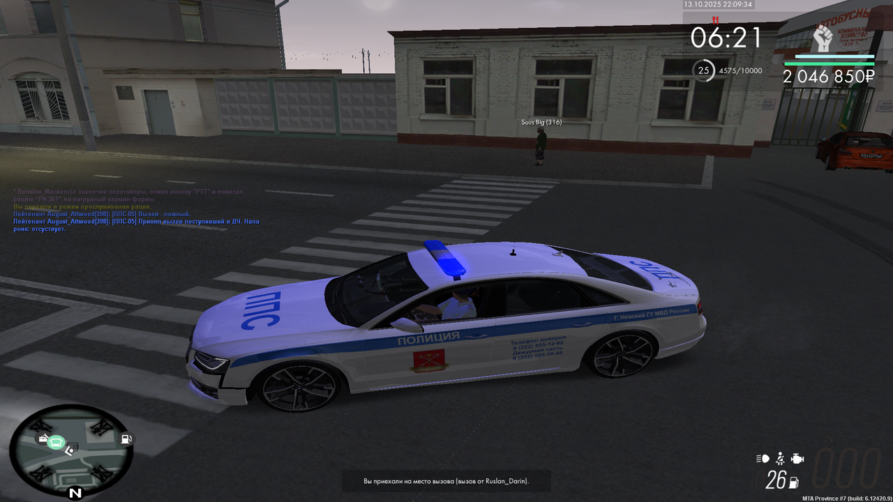 Aleksandr_Lopatin 4 · ID: #22 Опубликовано 17 октября В 16.10.2025 в 20:45, Aleksandr_Lopatin сказал: Скрыть контент Начальнику Управления внутренних дел по городу Мирный и области генерал-майору полиции Лопатину Вавилону Вавилоновичу от Инспектор ППС, Старший лейтенант Лопатина Александра Сергеевича РАПОРТ о проделанной работы инспектора патрульно-постовой службы Я, Лопатин Александр Сергеевич, занимая должность Инспектор ППС в звании Старший лейтенант полиции, прошу Вас рассмотреть мой рапорт о проделанной работе с 02.10.2025 по 16.10.2025 и начислить мне 457 баллов по факту проверенного рапорта. Прикрепляю свой отчёт: с 02-16.10.25 - вызова - https://postimg.cc/gallery/sRLhbJZ - 60 баллов. с 07-16.10.25 - Задержание 1-2 УР - https://postimg.cc/gallery/0JdvCMH - 42 баллов. 16.10.25. - Задержание 3-6 УР - https://postimg.cc/Ff2NNqPp - 9 баллов. с 09-16.10.25. - лекции - https://postimg.cc/gallery/YQQ4Cr6 - 48 баллов. 16.10.25. - Мероприятия - https://postimg.cc/gallery/3TmM0pP - 80 баллов. с 02-16.10.25 - Документы - https://postimg.cc/gallery/qrtzf1Z - 46 баллов. 03.10.25 - Патруль 30 мин. - https://postimg.cc/gallery/Rvc2nxC - 24 баллов. 03.10.25 - Патруль 40 мин. - https://postimg.cc/gallery/6y96tR5 - 24 баллов. 08.10.25 - Патруль 50 мин. - https://postimg.cc/gallery/xNT99Dq - 30 баллов. 16.10.25. - Пост УШ. 60 мин. - https://postimg.cc/gallery/BqZ1kzF - 24 балла. с 09-16.10.25 - Тренировки - https://postimg.cc/gallery/xfPXjyZ - 40 баллов. Более 7 критериев.- 30 баллов. Дата: 16.10.2025 Подпись: VAZ_21093. Поделиться сообщением Ссылка на сообщение Поделиться на другие сайты Поделиться