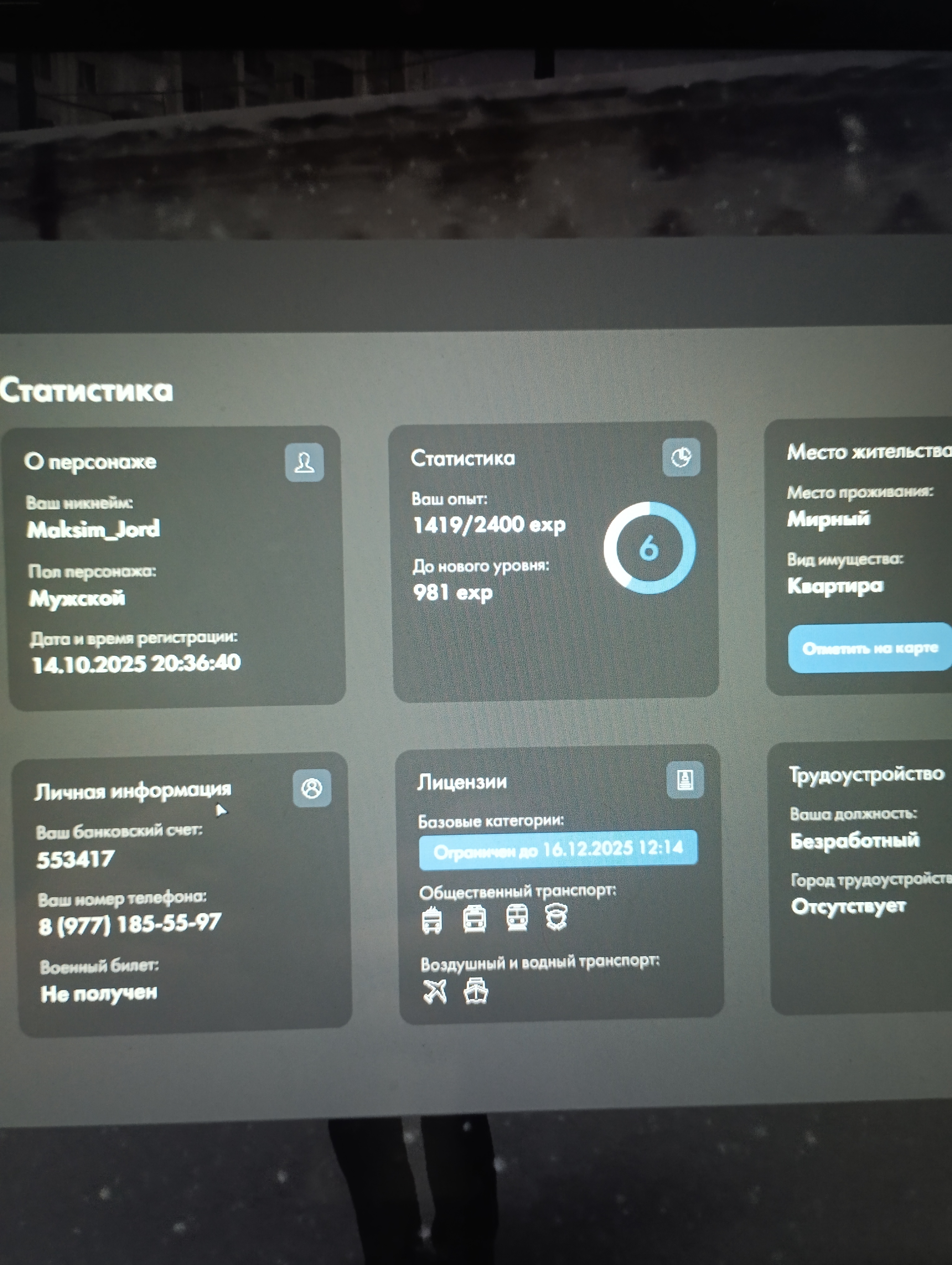 Vyacheslav_Bulannikov 1 · ID: #63 Опубликовано Понедельник в 10:10 Главному врачу центральной городской больницы Приволжска Ваюкину Максиму Юрьевичу от гражданина Провинции Лис Ангел Юрьевич Заявление Я, Лис Ангел Юрьевич, прошу принять в центральную городскую больницу Приволжска на должность интерна с соответствующей заработной платой. Ниже прилагаю следующую информацию: [IC info] Ф.И.О: Лис Ангел Юрьевич Ваш полный возраст: 25 Количество лет проживания в республике: 5 Предыдущее место работы (Если фракция, то последняя занимаемая должность): - Ваше образование: Высшее медицинское Ксерокопия паспорта (/pass, /stats, /timestamp): Статистика и паспорт Ксерокопия трудовой книжки (/tk, /timestamp): Трудовая книжка Ксерокопия медицинской карты (/medcard, /timestamp): Мед. Карта Что вы считаете долгом медицинского работника? Квалифицированное выполнение своих профессиональных обязанностей, предусмотренных нормами морально-этического и правового регулирования медицинской деятельности. Почему вы хотите устроиться на должность сотрудника больницы? (минимум 10 слов): В ирл родители работают в сфере медицины. Интересен сам процесс отыгрыша роли мед.работника ( в частности работника скорой помощи) Ваша краткая биография: Лис Ангел Юрьевич. Дата рождения 09/01/2000. Родился и вырос в Приволжской республике. С раннего возраста проявлял интерес к различным вещам (общественный транспорт, работа полицейских, мед.работников, железной дороге и прочему спец транспорту.) В юношестве ему очень понравились медицинские сериалы (Доктор Хаус, Склифосовский, 911 Служба спасения, Скорая помощь) из-за этого он решил, что хочет связать свою жизнь с работой в сфере медицины. В следствии этого он выбрал свой путь - среднее профессиональное образование по специальности «Лечебное дело». Так же т.к ему была интересна работа в скорой помощи он прошёл дополнительную профессиональную переподготовку по специальности «Скорая и неотложная помощь». [OOC info] Ваше настоящее имя: Андрей Ваш полный возраст: 22 Опыт игры на RP серверах (Указываем конкретный проект, никнейм и занимаемую должность): Радмир РП (ещё старый, на самп 0.3е который) МО подполковник Sergeyi_Connor, там же в ДПС Sergeyi_Loshkarev. Банды ( точно не помню название ОПГ помню что была в Лыткарино) Ну и провинция Vyacheslav_Bulannikov в июне 2023 был в ЦГБ Приволжск Лаборант Доказательство Ваш часовой пояс: МСК Ваш средний онлайн в игре: 2-4 часов (т.к в будни работаю, играю по вечерам, в выходные чуть по больше) Ссылка на страничку VK: ВК Дата: 15.12.25 Подпись:Лис_ Поделиться сообщением Ссылка на сообщение