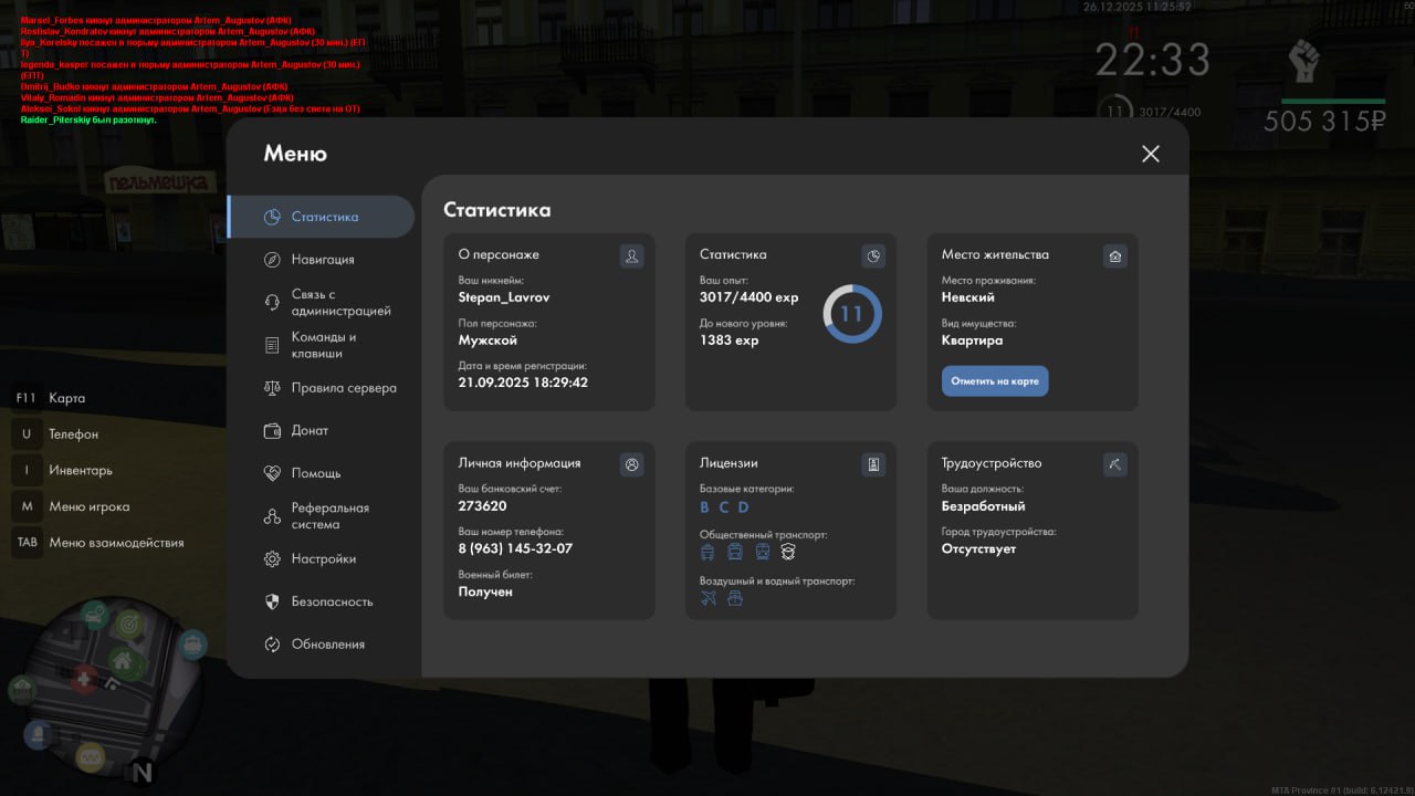 3. Статистика вашего игрового персонажа (/stats): https://yapx.ru/album/cZZiz