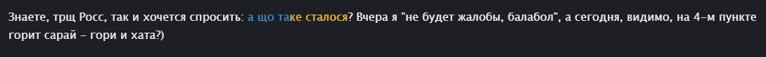 Privolzhskiy_Ghoul 15 · ID: #1 Опубликовано 3 февраля 1. Ваш никнейм: Пока ещё не зарегистрировался, скоро буду, меня в УГИБДД заблатить обещали 2. Название фракции: ОМВД-П 3. Никнейм сотрудника: Evgeniy_Shvetsov 4. Скриншот/видео от любого лица: https://storage.yandexcloud.net/fotora.ru/57dfd177e0a1a9a5.png 5. Суть жалобы: Дннй члвк, существл гражданский надзор за деятельностью ОМВД-Пэ превысял должностный полномочий. Я согласен, что система ГАС "Правосудие" нэидеальна и с лидером будет проведена беседа, но всё же: прилюдно раздувать конфликт и ротовую полость воздуходувным устройством марки STIHL, серьезно? Ну это не в каике ворота. Слёзно прош администрации разобарттся, принять... уэыэээыыы... меры для разрешение дннг кнфлкт между ними Поделиться сообщением Ссылка на сообщение