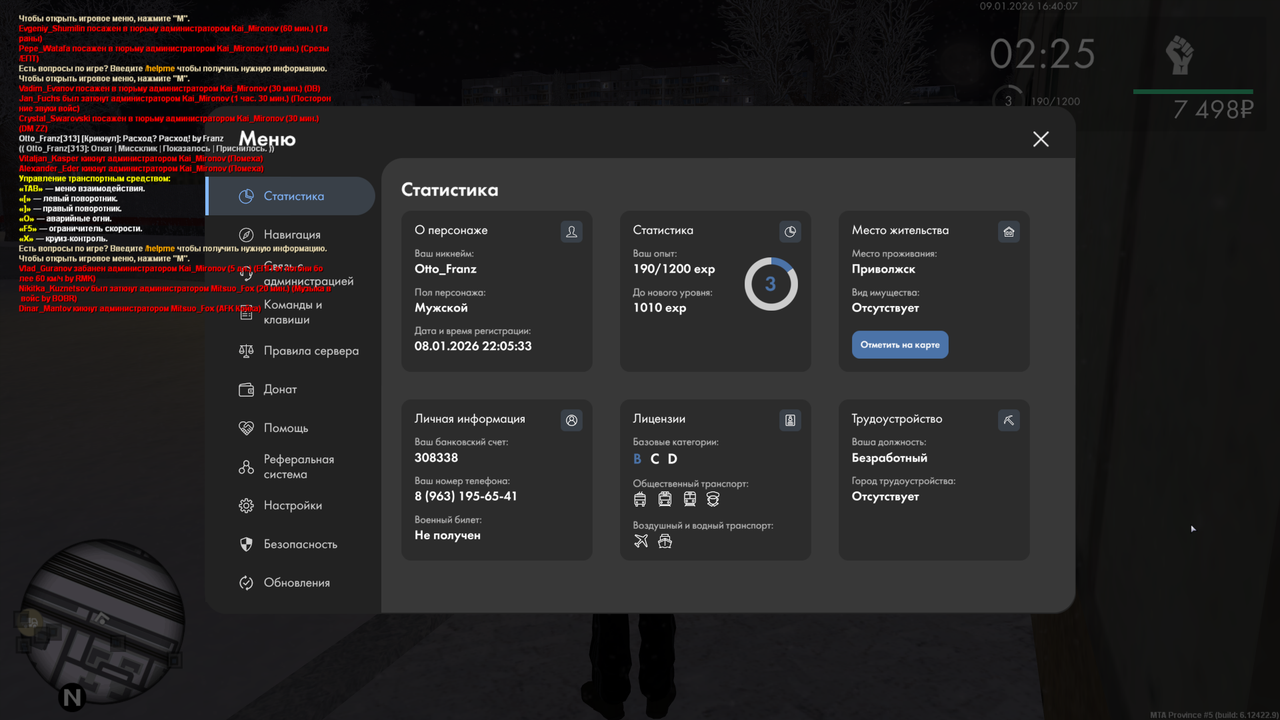 3. Скриншот статистики вашего игрового персонажа [/stats]: https://i.postimg.cc/Vkz4Fvpt/mta-screen-2026-01-09-16-40-07.png
