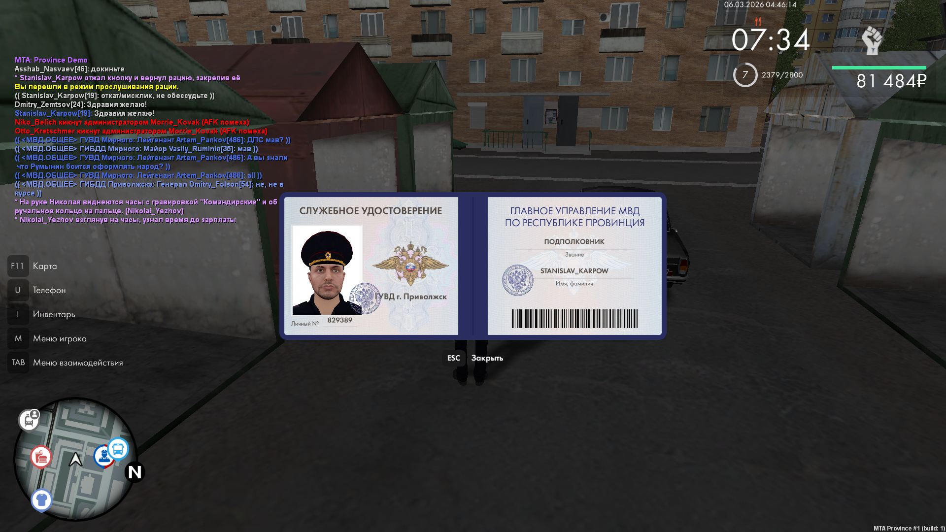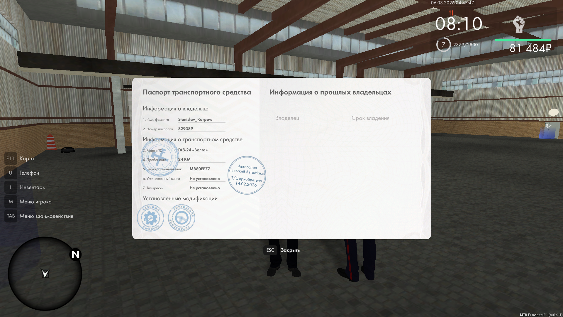 Stanislav Karpow 12 · ID: #523 Опубликовано Пятница в 01:53 (изменено) Начальнику Отдела МВД по Приволжскому району Генерал-лейтенанту полиции Ежову Николаю от Начальника Отдела уголовного розыска подполковника полиции Карпова Станислава Михайловича Рапорт Я, Начальник Отдела уголовного розыска, подполковник полиции Карпов Станислав Михайлович, прошу Вас зарегистрировать моё личное транспортное средство марки ГАЗ-24 с ГРЗ М880ЕР77 в качестве служебного транспорта. К рапорту прилагаю следующие документы: • Копия паспорта транспортного средства [/pts] *ccылка* • Копия удостоверения[/ud]: *ссылка* • Копии фотографий автомобиля: *ссылка* Дата: 06.03.2026 Подпись: Стасик Изменено Пятница в 21:41 пользователем Nikolai_Yezhov Одобрено by NY Поделиться сообщением Ссылка на сообщение
