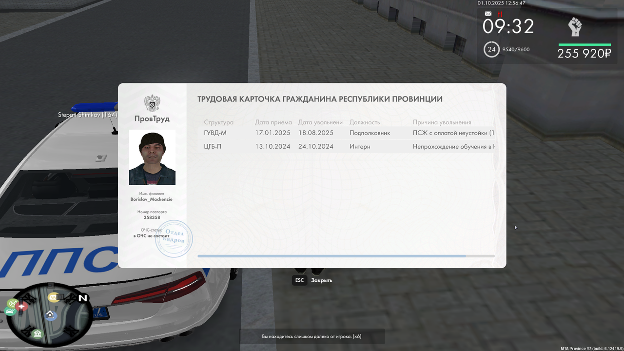 Azik_X 2 · ID: #52 Опубликовано 30 сентября Начальнику управления внутренних дел по городу Невский и области генерал-майору полиции Вольцогену Альфредо Романовичу от гражданина Республики Провинция Маккензи Анатолия Маратовича З А Я В Л Е Н И Е Я, Маккензи Анатолий Маратович, находившийся на должности Сотрудника ЦСН, в звании Капитана полиции в УВД-Н, прошу Вас рассмотреть заявление на принятие решения о возобновлении моего контракта с Министерством Внутренних Дел, и непосредственно с Управлением внутренних дел по городу Невский и области. Обязуюсь соблюдать Кодекс государственной службы, Закон «О полиции», иную уставную документацию, которая определяет мою службу как сотрудника Министерства внутренних дел Республики Провинция, готов пройти полную плановую переаттестацию, а также заявляю, что членом других государственных организаций не являюсь. Прикладываю нужную информацию о себе как о гражданине Республики Провинция: ФИО: Маккензи Анатолий Маратович Возраст: 31 Образование: Высшее юр. Категории прав: B,C,D Имелись ли проблемы с законом? Если да, то какие?: Нет Ксерокопия документов (/stats + /pass + /tk + /vb + мед. карта + /timestamp): https://disk.yandex.ru/a/LCvxYeRoBxjLgg Весомые доказательства пребывания в ряду Министерства внутренних дел: https://disk.yandex.ru/a/RrOzzRoIihICVQ Ссылка на спецсвязь во ВКонтакте: https://vk.com/tolyamack Даю согласие на обработку персональных данных, которые обязуюсь предоставлять после одобрения данного заявления, необходимые для работы ГУВД. Настоящее согласие действует со дня подписания до дня его отзыва в письменной форме. Дата: 30.09..2025 Личная подпись: CSN Поделиться сообщением Ссылка на сообщение Поделиться на другие сайты Поделиться
