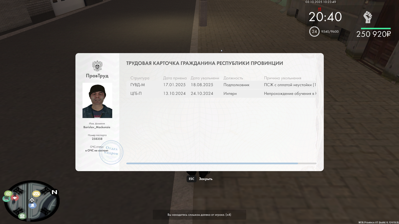 Borislav_Mackenzie 24 · ID: #56 Опубликовано 2 октября Начальнику управления внутренних дел по городу Невский и области генерал-майору полиции Вольцогену Альфредо Романовичу от гражданина Республики Провинция Маккензи Борислава Маратовича З А Я В Л Е Н И Е Прошу Вас рассмотреть заявление о составлении контракта о прохождении службы в Управлении внутренних дел по городу Невский и области гражданином Республики Провинция, Маккензи Борислав Маратовичем, на звание Капитана полиции. Обязуюсь соблюдать Кодекс государственной службы, Закон «О полиции», иную уставную документацию, которая определяет мою службу как сотрудника Министерства внутренних дел Республики Провинция, а также заявляю, что членом других государственных организаций не являюсь. Прикладываю нужную информацию о себе как о гражданине Республики Провинция: ФИО: Маккензи Борислав Маратович Возраст: 31 Образование: Высшее юр. Категории прав: B,C,D Имелись ли проблемы с законом? Если да, то какие?: Нет Ксерокопия документов (/stats + /pass + /tk + /vb + мед. карта + /timestamp): вот Весомые доказательства пребывания в ряду Министерства внутренних дел: вот Ссылка на спецсвязь во ВКонтакте: https://vk.com/id697447122 Даю согласие на обработку персональных данных, которые обязуюсь предоставлять после одобрения данного заявления, необходимые для работы ГУВД. Настоящее согласие действует со дня подписания до дня его отзыва в письменной форме. Дата: 02.10.2025 Личная подпись: дд6 В 02.10.2025 в 14:21, Borislav_Mackenzie сказал: Начальнику управления внутренних дел по городу Невский и области генерал-майору полиции Вольцогену Альфредо Романовичу от гражданина Республики Провинция Маккензи Борислава Маратовича З А Я В Л Е Н И Е Прошу Вас рассмотреть заявление о составлении контракта о прохождении службы в Управлении внутренних дел по городу Невский и области гражданином Республики Провинция, Маккензи Борислав Маратовичем, на звание Капитана полиции. Обязуюсь соблюдать Кодекс государственной службы, Закон «О полиции», иную уставную документацию, которая определяет мою службу как сотрудника Министерства внутренних дел Республики Провинция, а также заявляю, что членом других государственных организаций не являюсь. Прикладываю нужную информацию о себе как о гражданине Республики Провинция: ФИО: Маккензи Борислав Маратович Возраст: 31 Образование: Высшее юр. Категории прав: B,C,D Имелись ли проблемы с законом? Если да, то какие?: Нет Ксерокопия документов (/stats + /pass + /tk + /vb + мед. карта + /timestamp): вот Весомые доказательства пребывания в ряду Министерства внутренних дел: вот Ссылка на спецсвязь во ВКонтакте: https://vk.com/id697447122 Даю согласие на обработку персональных данных, которые обязуюсь предоставлять после одобрения данного заявления, необходимые для работы ГУВД. Настоящее согласие действует со дня подписания до дня его отзыва в письменной форме. Дата: 02.10.2025 Личная подпись: дд6 dell Начальнику управления внутренних дел по городу Невский и области генерал-майору полиции Вольцогену Альфредо Романовичу от гражданина Республики Провинция Маккензи Борислава Маратовича З А Я В Л Е Н И Е Прошу Вас рассмотреть заявление о составлении контракта о прохождении службы в Управлении внутренних дел по городу Невский и области гражданином Республики Провинция, Маккензи Борислав Маратовичем, на звание Капитана полиции. Обязуюсь соблюдать Кодекс государств