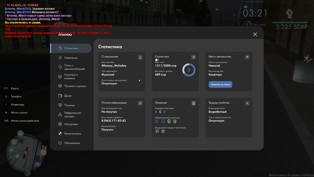mesalkindanil 0 · ID: #10 Опубликовано Суббота в 10:14 Я,Афанасий молодой алексеевич, являясь гражданином Республики Провинция, прошу рассмотреть Вас моё заявление на трудоустройство в филиал ГИБДД по городу Невский с присвоением звания Старшина полиции и должности ОВ. Я подтверждаю факт ознакомления со всеми законодательными документами и даю согласие на обработку своих персональных данных в рабочих целях. К своему заявлению прикладываю следующую информацию: IC Information: • Ваше Ф.И.О.: Афанасий молодой алексеевич • Сколько Вам полных лет: 25 • Сколько лет Вы проживаете в Республике: 5 • Ваш банковский счёт: 318011 • Ксерокопия документов (/pass, /lic, /tk, /vb, /medcard с /timestamp или временем над HUD): https://postimg.cc/gallery/nsGg67t • Ваше образование: Высшее Юридическое OOC Information: Даниил Мешалкин алексеевич • Настоящее имя: Даниил • Настоящий возраст: 15 • Ежедневный онлайн: от 2-ух часов • Скриншот статистики (/stats с /timestamp или временем над HUD) • Разница с часовым поясом МСК: +2 • Ссылка на страницу ВКонтакте: https://vk.com/id783310526 Дата написания заявления: 11.10.2025. Подпись: Fan Guf Поделиться сообщением Ссылка на сообщение Поделиться на другие сайты Поделиться